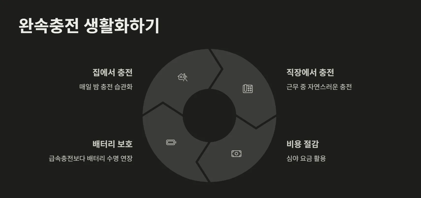 급속충전을 보완 수단으로 활용하면 일상의 충전 스트레스를 줄일 수 있습니다.