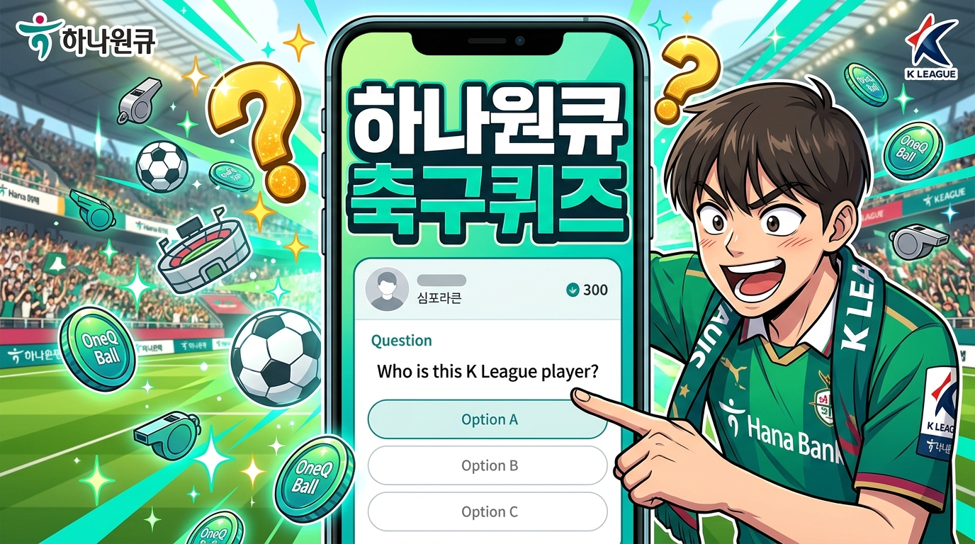 A. 하나원큐 앱 실행 후 메인 화면의 '이벤트' 탭, '원큐볼' 또는 '축구' 관련 메뉴를 통해 참여할 수 있었어요. K리그 시즌 중에는 메인 배너에 자주 노출되니 찾기 쉬웠어요. Q. 퀴즈를 틀리면 다시 풀 수 있나요?