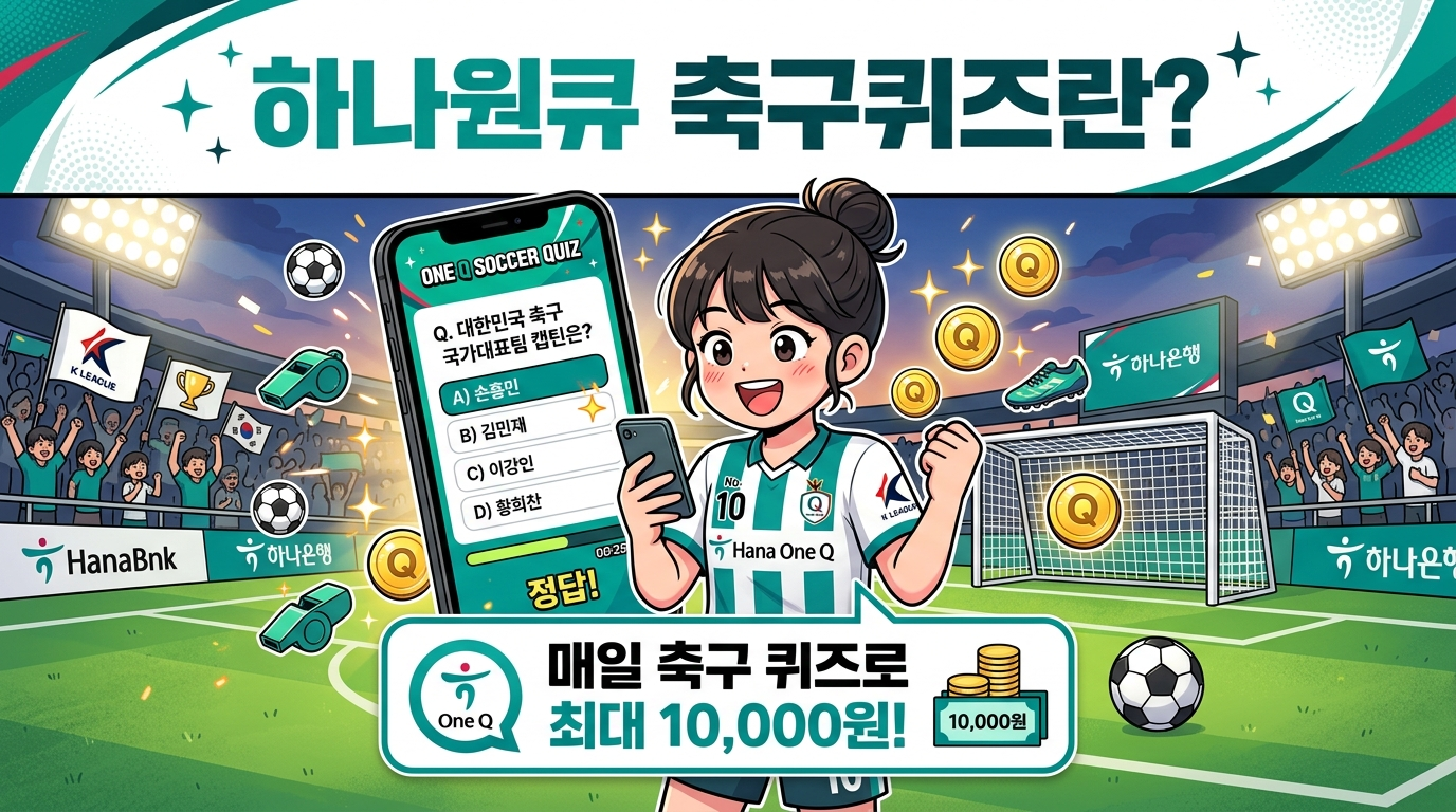 하나원큐 축구퀴즈는 하나은행 모바일 앱인 하나원큐에서 매일 참여할 수 있는 앱테크 이벤트예요.